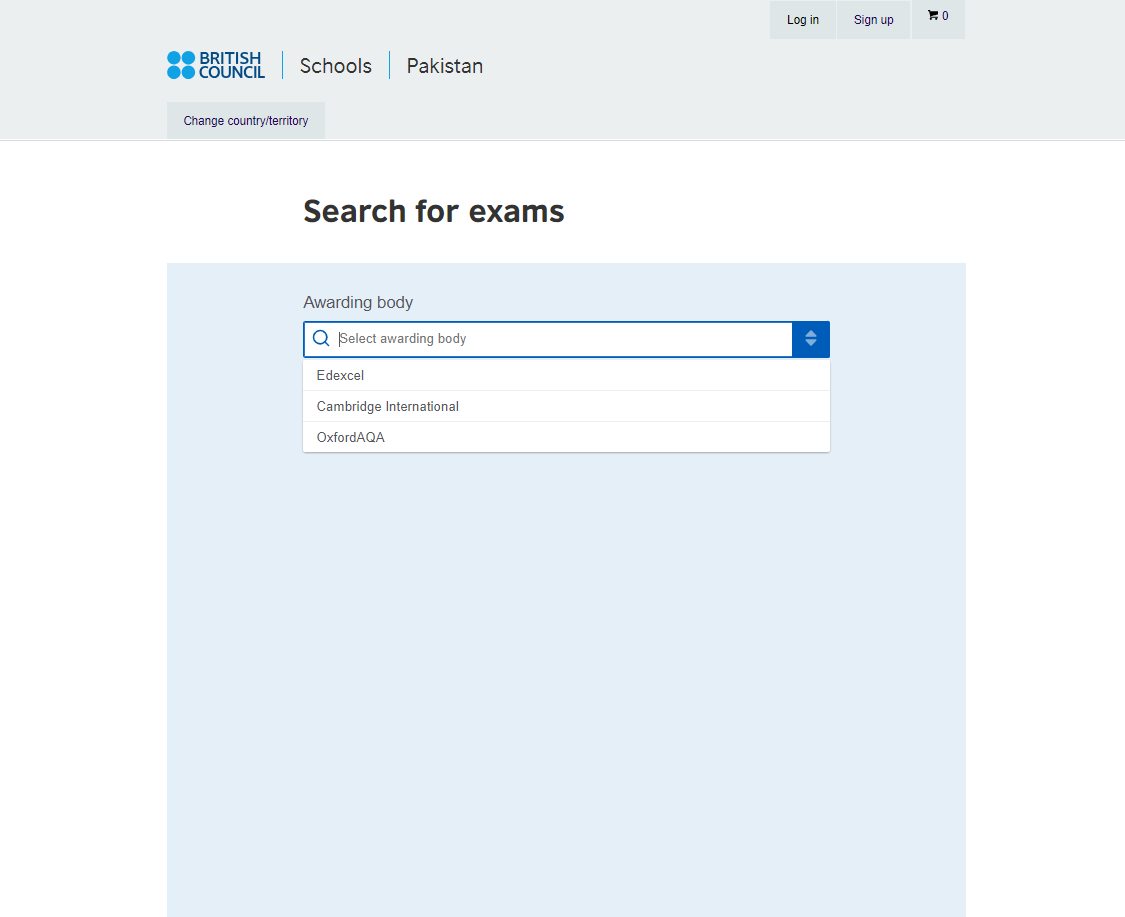 On this page, you need to select the Awarding body. Since you are looking to register for Cambridge exams, you’ll see a few options in the dropdown menu: