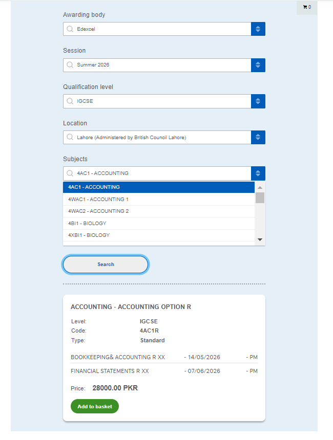 Once you click "Add to Basket," a summary card for each subject will appear. This is your chance to double-check everything before you spend any money.