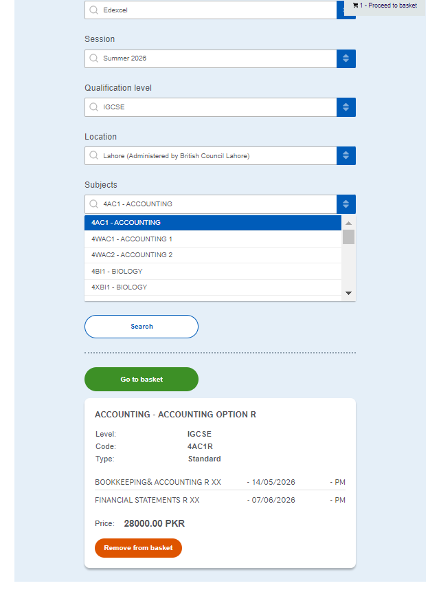 - Pricing: Check the final price in your local currency (e.g., 28000.00 PKR per subject). If you’ve added something by mistake, just hit that orange "Remove from basket" button.