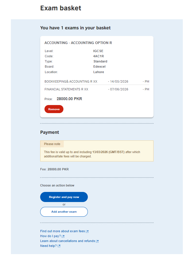 Once you’ve added all your subjects, you’ll be taken to the Exam basket page. Think of this as your final checkout screen. This is the most important page to review because it summarizes everything you are about to pay for.