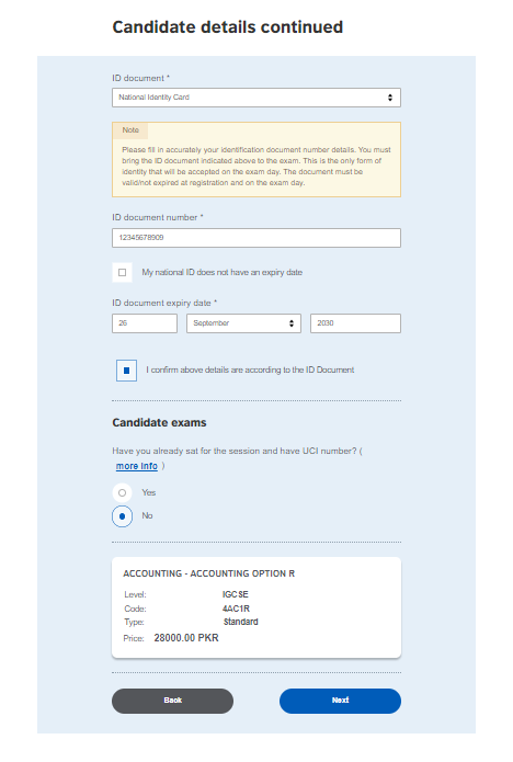 - ID Document Number: Carefully type in your ID number. Double-check every digit if this is wrong, you might face issues on exam day!